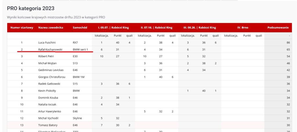 Zawody obejmują 4 rundy. Trzy eliminacje na torze Rabocsiring oraz rundę finałową gościnnie na Autodromie BRNO. Aktualnie Rafał zajmuje 2 miejsce i ma szansę na zajęcie najwyższego miejsca na podium.
